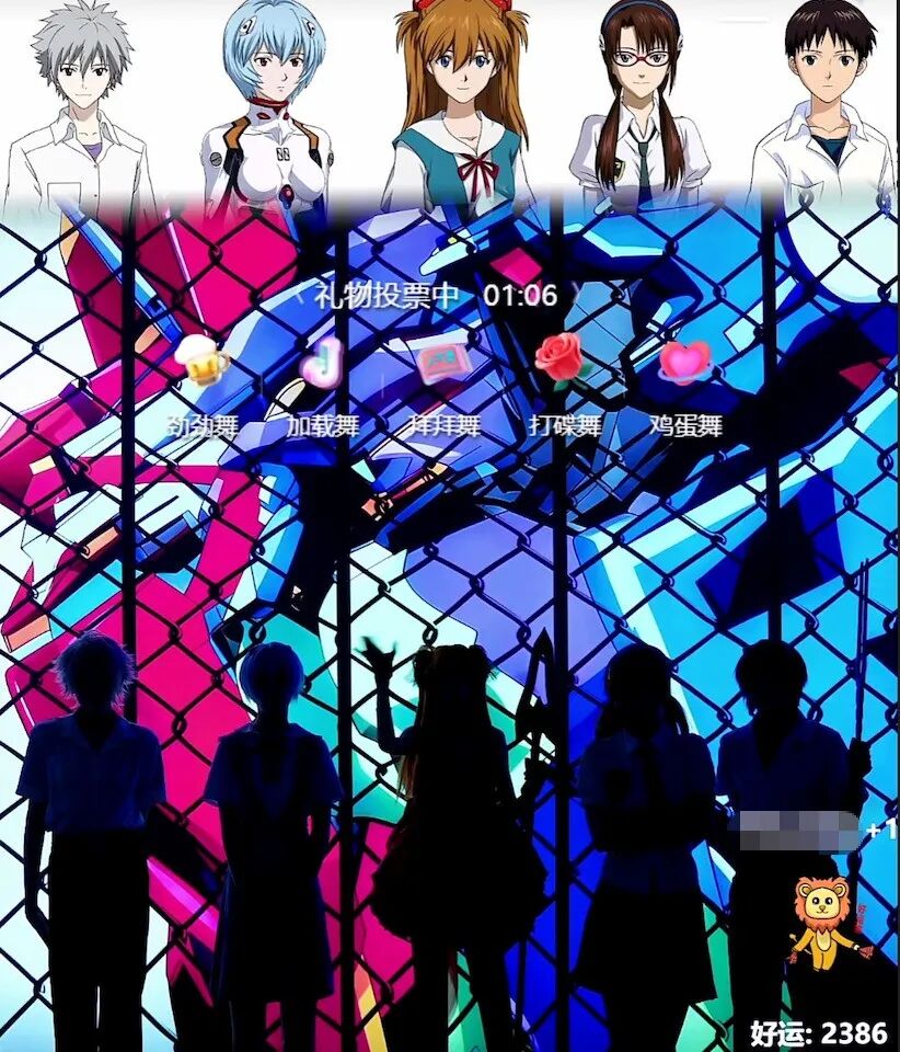 热度是要蹭的,尊重是基本没有的。于是在抖音的二次元团播里,只有想不到没有看不到。随便刷一刷,你就可能看到团播投票阶段一边放《斗罗大陆》动画主题曲《破茧》,一边放《王者荣耀》游戏语音播报“请选择你的英雄”,投票完亮灯发现cos出的是《英雄联盟》;也能看到涂山雅雅、蝴蝶忍、洛天依、蕾姆、芙莉莲站成一排,直播介绍是《全职法师》;看到《疯狂动物城》狐狸尼克在《排球少年》下面玩爱的魔力转圈圈;看到《鬼灭之刃》logo改版的“男公关部”任君挑选。