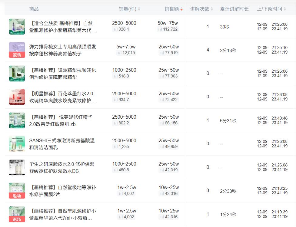 12月4日,@画梅 在朋友圈宣布将于近几天重新开播。12月9日晚上9点,他在抖音复播,预估销售额为750万-1000万元,总观看人次达到591.4万,人气峰值为18.6万。截至发稿,@画梅 的抖音粉丝量从退网时最低点(419万)回升至471万,显示出强大的粉丝粘性和顶流号召力。