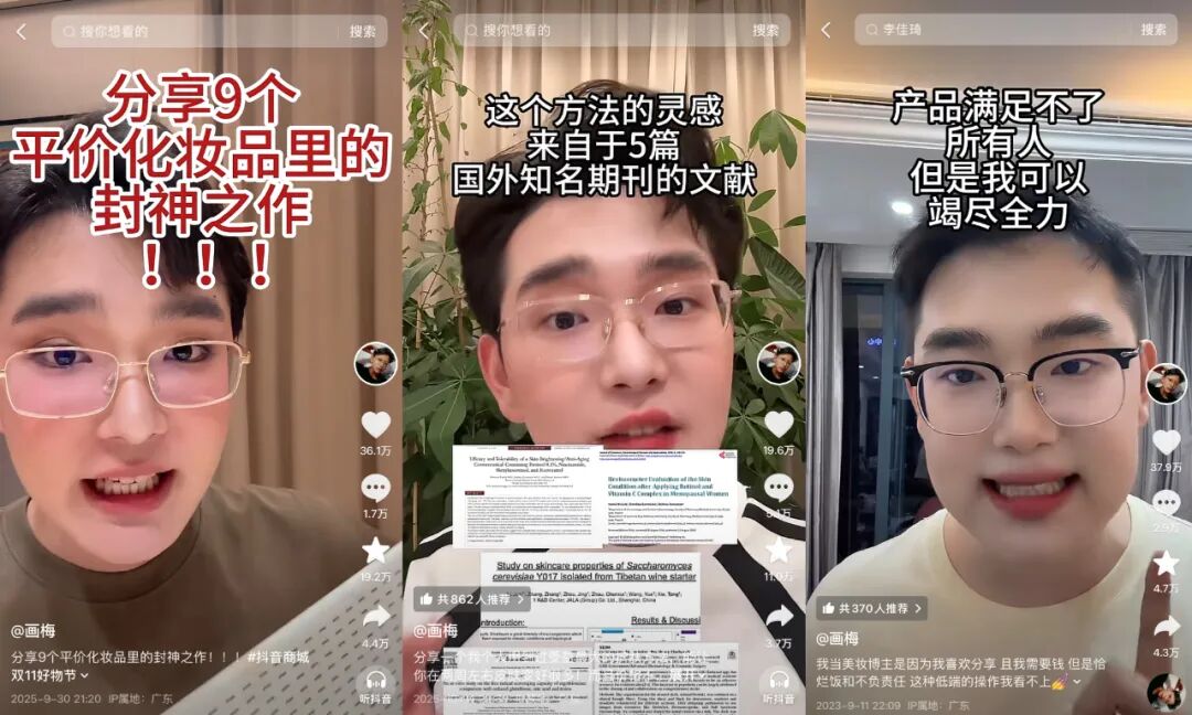 在美妆赛道中,@画梅 一向以其严谨内容著称。他曾表示:“所有产品经由选品组十六位配方师仔细核对、至少30人上脸实测后才会选择推荐”。他坦言,做博主这五年,只出去旅游过一次,把几乎所有时间都投入到了内容和粉丝身上。