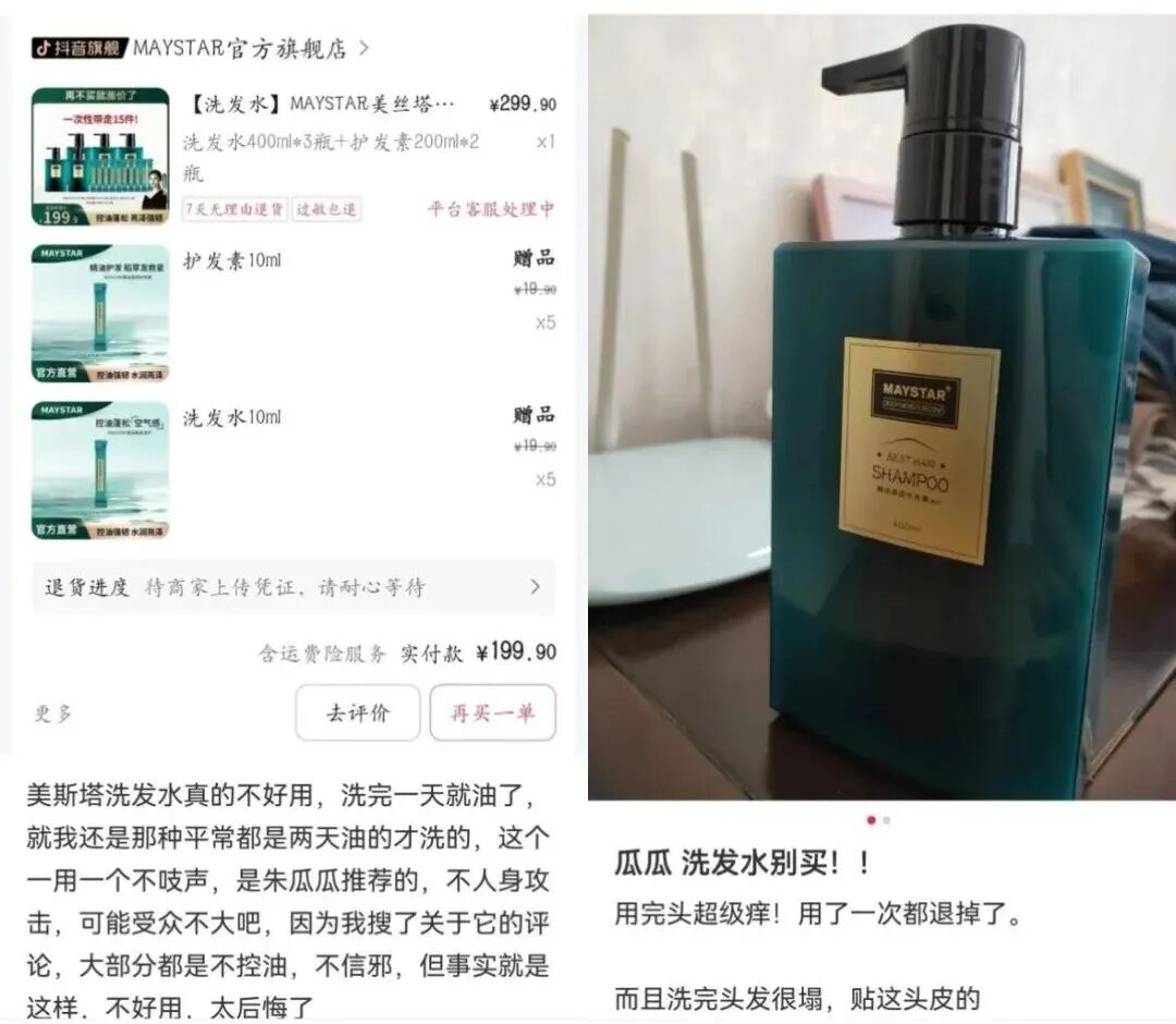 @朱瓜瓜 凭借独特的“剧情式直播”和“品牌亲闺女”人设创造了显著的销售业绩,但同时也因产品质量、宣传真实性以及直播套路等问题陷入了争议。她带货的Maystar香氛精油洗发露陷入消费者投诉风波。多位买家在社交平台及这款产品的售后反馈中表示,使用该产品后“头超级痒,用了一次就退掉了”“洗完一天头就油了,真的很不好用”,甚至存在使用后掉发等问题。