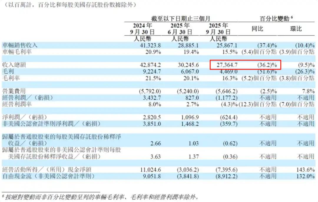 图/2025年Q3小鹏汽车财报部分数据 来源/互联网 新能源观截图