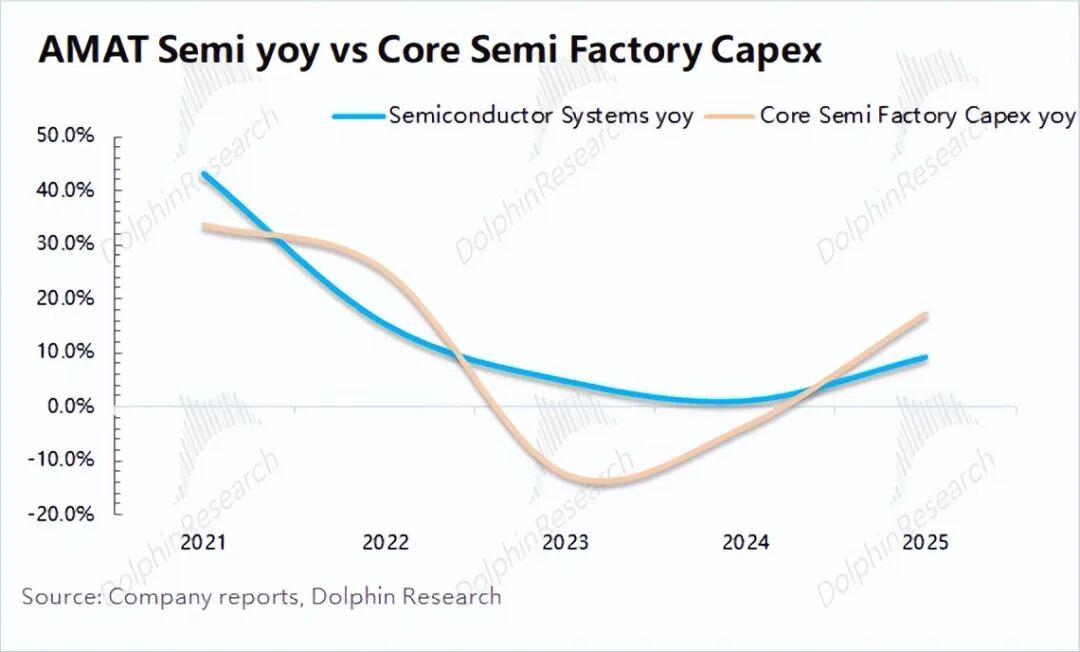 因而,对于应用材料AMAT的业绩预测,主要关注点在于下游晶圆制造厂的资本开支情况和公司在半导体设备领域的份额表现。