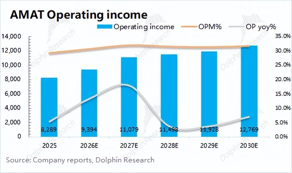 ②费用率方面:应用材料AMAT近期披露将裁员约4%。伴随着裁员落地,海豚君预期公司在2026财年的经营费用将有所减少。之后即使公司经营费用可能再次提升,但在费用投入方面,公司会更为谨慎。