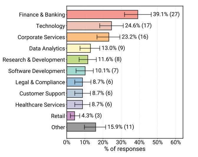 其中,金融与银行业是第一大战场,占比39.1% 其次是科技(24.6%)和企业服务(23.2%) 。
