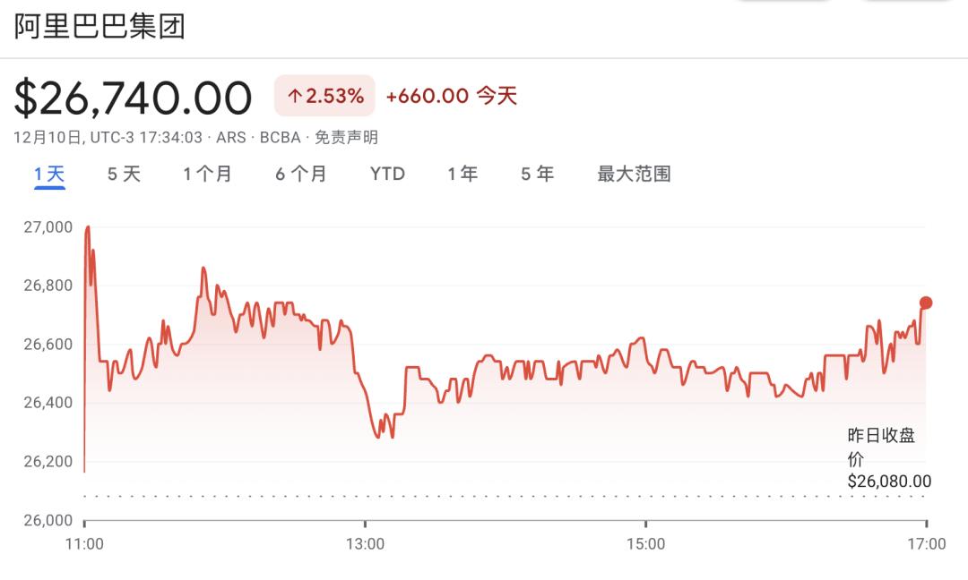 消息一出,投资者全部炸锅了,阿里巴巴美股盘前一度上涨4%,收盘涨幅2.53%。