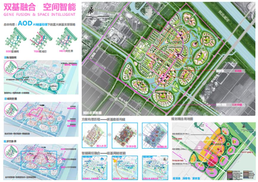 大赛一等奖获奖团队作品来自上海同济城市规划研究院有限公司——作品《双基融合 空间智能》。方案以双基融合空间智能作为主题,思考碳基硅基互成关系。碳基的人文智慧需要传承,硅基的人工智能创新需要土壤。AI并非硅基对碳基的取代,而是深度的融合与双向赋能。以AOD作为硅基总纲领,探索碳基生态韧性维度EOD、城市发展纬度TOD、人文活力纬度HOD三维度的空间智能增效。以增强城市韧性的自适应性、城市功能的运行效率、人文空间的多元魅力。塑造团岛智脉网、泊城青空圈、起步万象界三大碳硅融合空间特征。