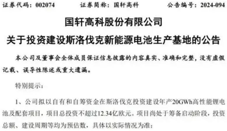 目前看,国轩高科的“疯狂扩产模式”仍在继续。2024年12月,国轩高科发布公告称,公司计划在摩洛哥和斯洛伐克合计建设40GWh锂电池项目,总投资额高达25.14亿欧元(约191亿元人民币)。其中,斯洛伐克项目的总投资额不超过12.34亿欧元,初期电池产能将达到20GWh,并具备扩容至40GWh的潜力。工厂预计于2026年二季度投产,2027年开始全面生产,全部产品将出口到欧盟市场。