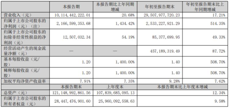 财报数据显示,今年前三季度,国轩高科实现营业收入295.08亿元,同比增长17.21%;实现归母净利润25.33亿元,同比增长514.35%;实现扣非归母净利润8537.77万元,同比增长49.33%。其中,2025年第三季度,国轩高科实现营业收入101.14亿元,同比增长20.68%;实现归母净利润21.67亿元,同比增长1434.42%;实现扣非归母净利润1250.70万元,同比增长54.19%。