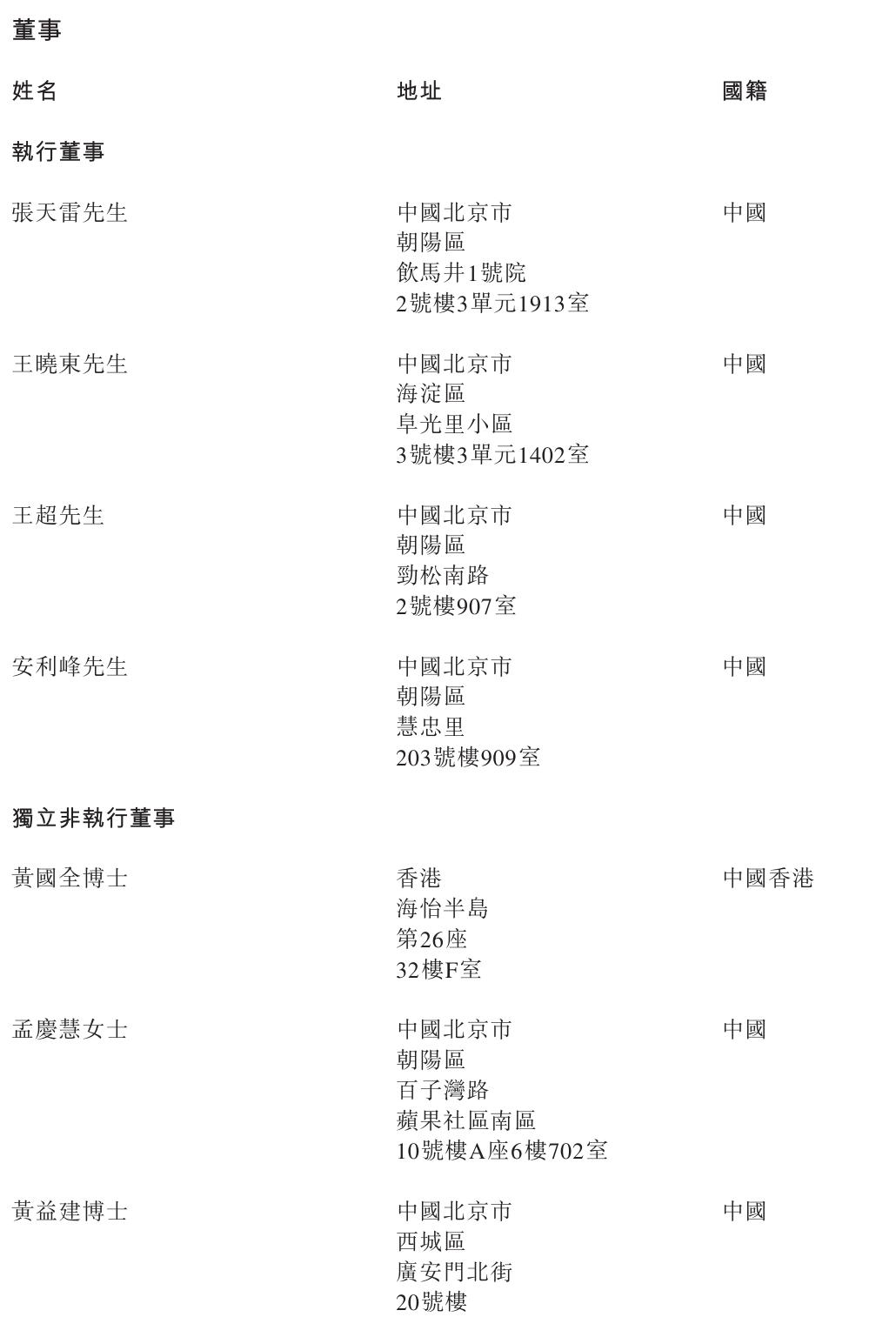 主线科技执行董事分别为张天雷、王晓东、王超、安利峰;独立非执行董事分别为黄国全博士、孟庆慧女士、黄益建博士。