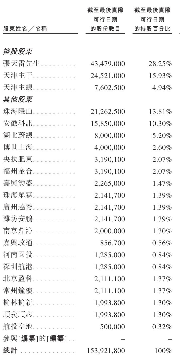 IPO前,张天雷持股为28.25%,天津主干持股为15.93%,天津主线持股为4.94%,珠海隐山持股为13.81%,安徽科讯持股为10.3%,蔚来资本旗下湖北蔚线持股为5.2%,博世上海持股为2.6%,央扶肥东、福州金合分别持股为2.07%;