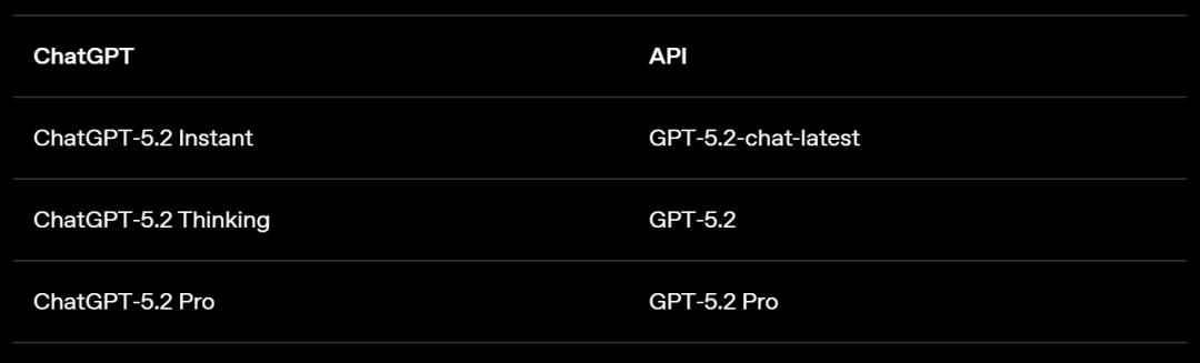 在API平台中,GPT‑5.2系列新模型可以在Responses API和Chat Completions API中以上图对应形式使用。