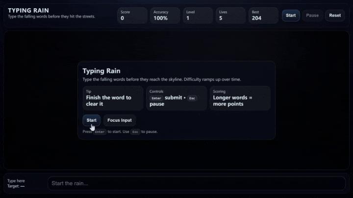 - - Features: Increasing difficulty, accuracy tracker, score.