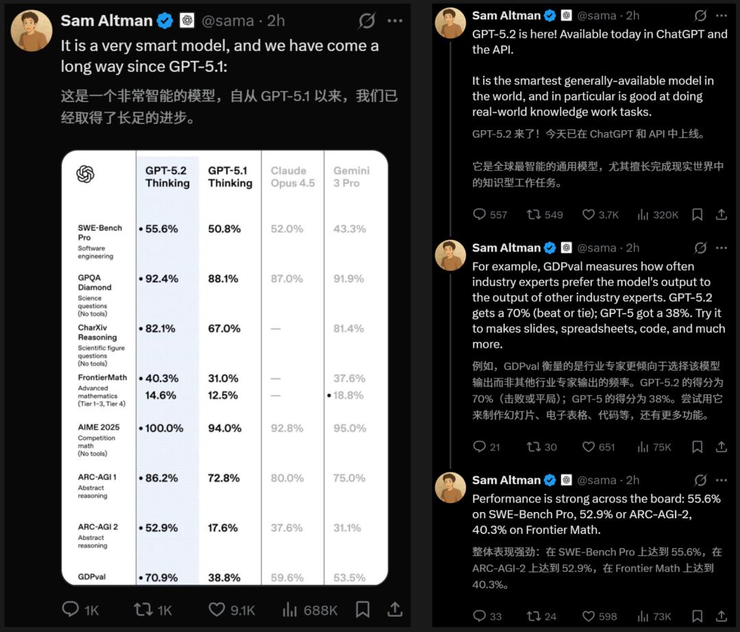 GPT-5.2震撼发布,全球AI王座再次易主。