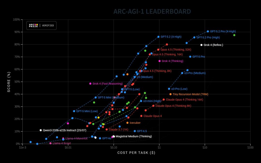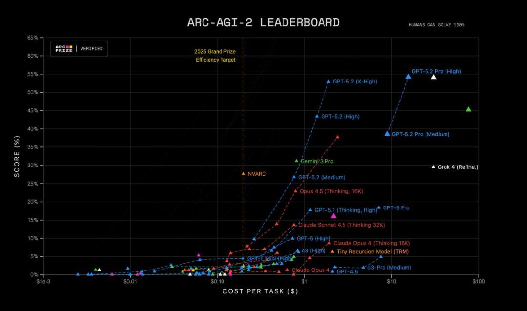 ARC-AGI-2:GPT-5.2 Pro以52.9%的绝对优势登顶全球第一;