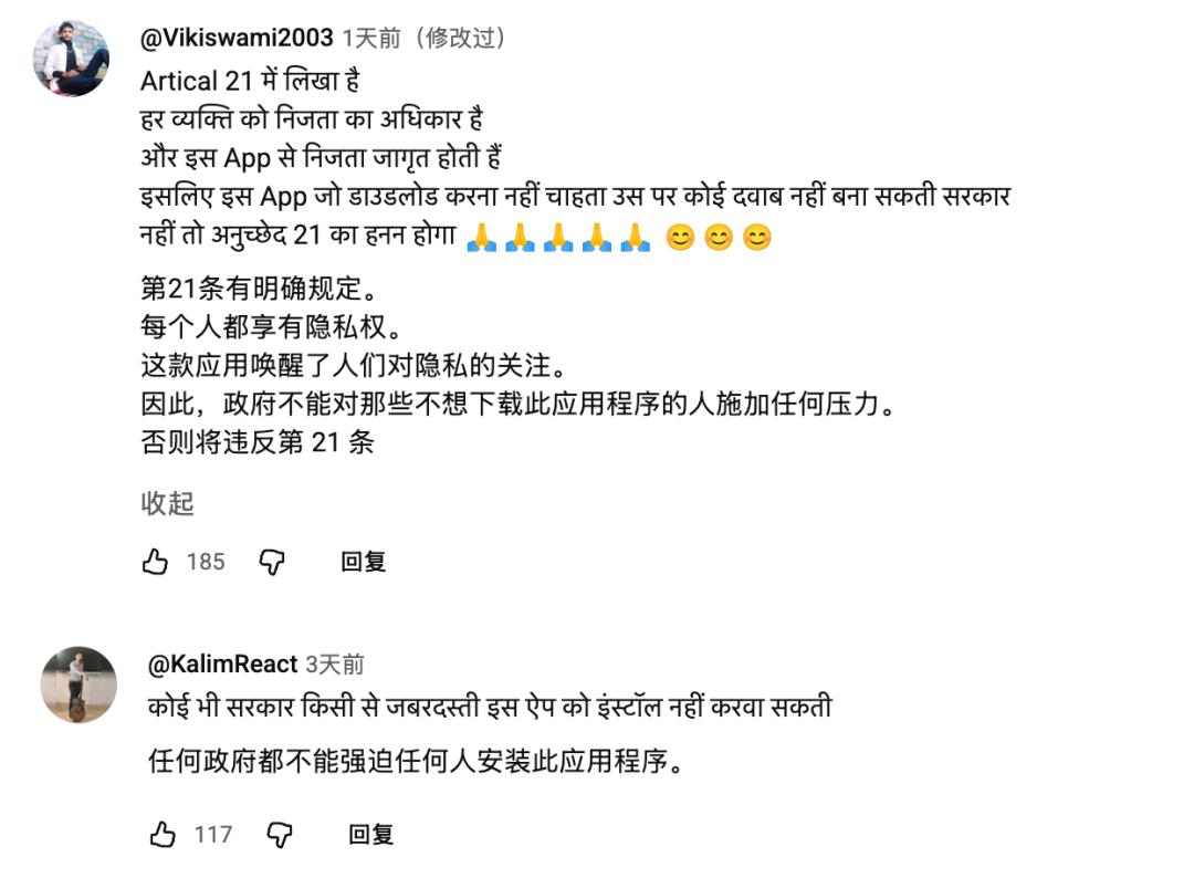 而反方的点则主要集中在“强制”和“隐私”这两个雷点,有的人觉得印度政府不能强迫人们去安装这个应用,还有人搬出了法条,指出印度政府此举有可能违反公民的隐私权条例。