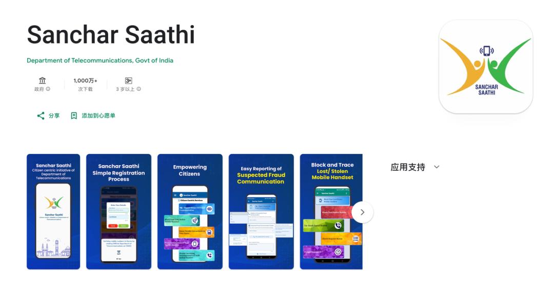 这个应用一开始只是印度电信部在2023年推出的网页功能,目的是帮助用户举报诈骗电话/网络连接、锁定被盗/丢失手机、验证手机真伪以及看看自己名义下办了多少SIM卡,等等等等。