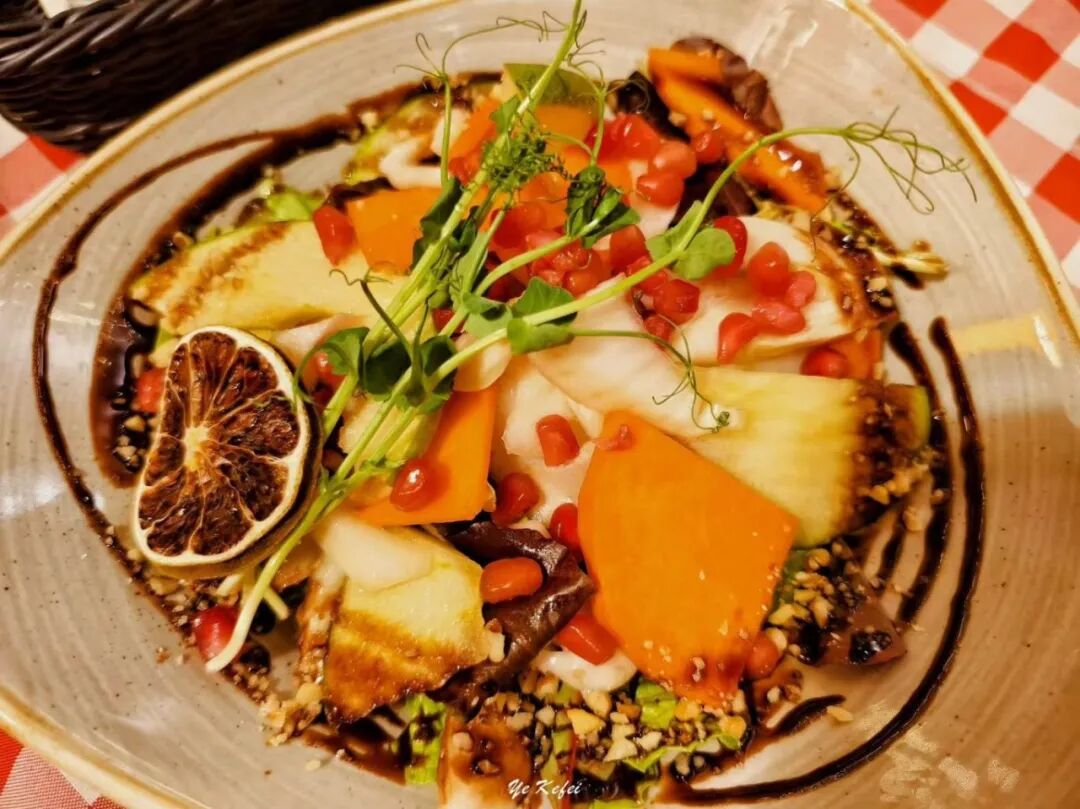 扭头一看,几十米外是一家印象深刻的餐厅。2014年3月的一个夜晚,我初至布达佩斯,第一顿饭就是在这里享用。于是,它又成了我的年夜饭选择。十一年后,它一如从前,连侍应都依稀是旧时模样。粗豪的炖牛肉、鲜香的鱼汤和精致漂亮的沙拉,也没有改变。