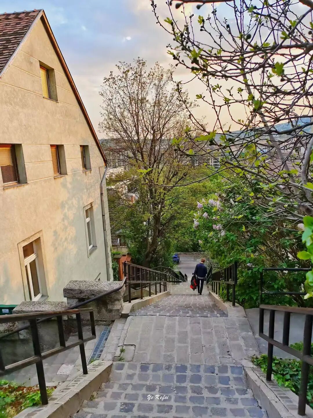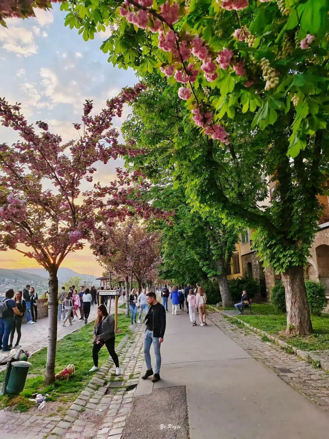 我曾多次到访布达城堡,第一次是白天,之后都是晚上。这里晚上总比白天人多,因为布达佩斯夜景极其迷人,城堡山就是最好的观景台。有一年晚冬,还遇上了老城墙一带的樱花盛开,景致更是迷人。