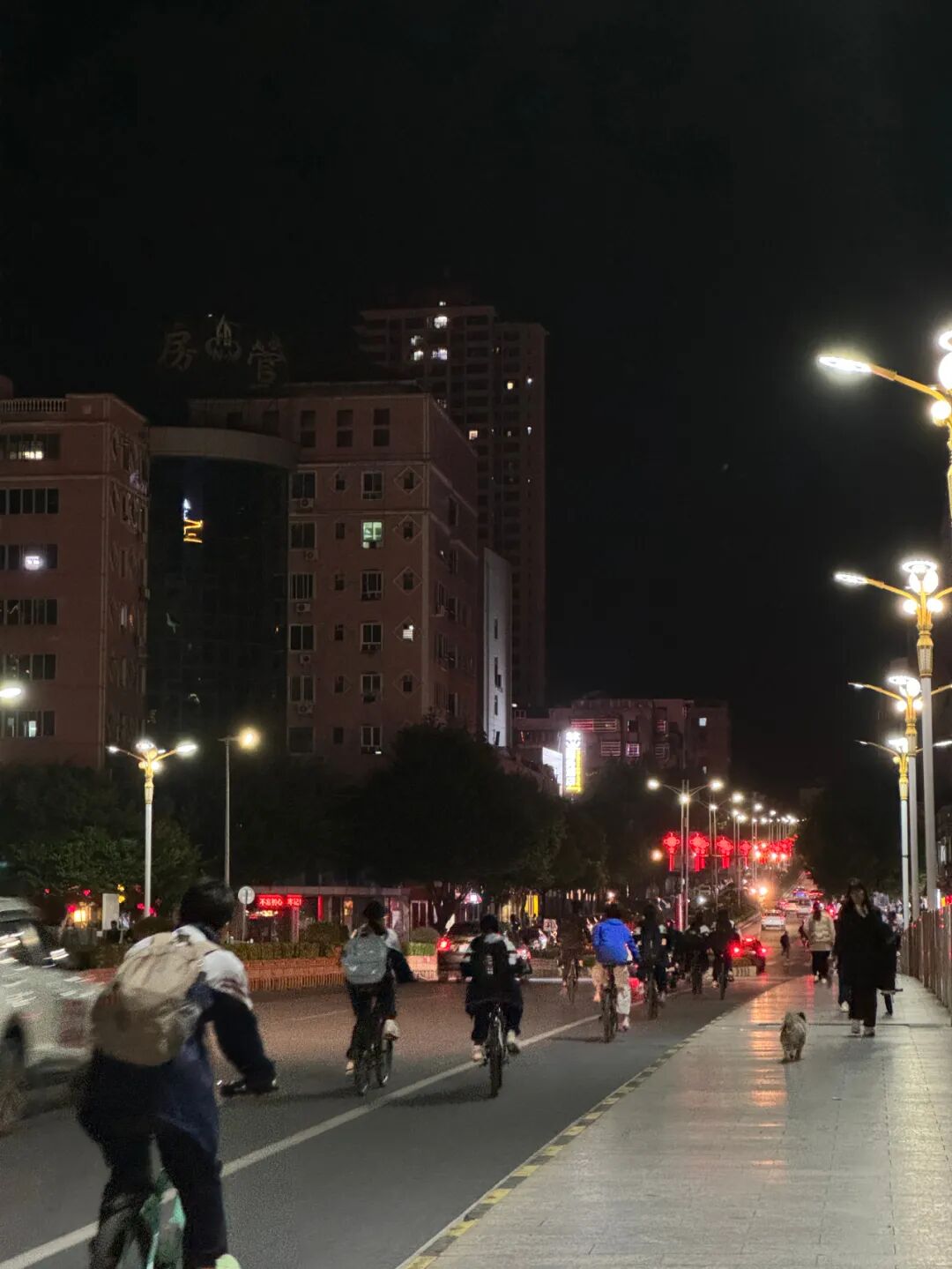 吃完晚餐散步消食,走过青云桥,晚修放学的学生骑车飞驰而过,路口的灯笼亮起,氛围好似过年。