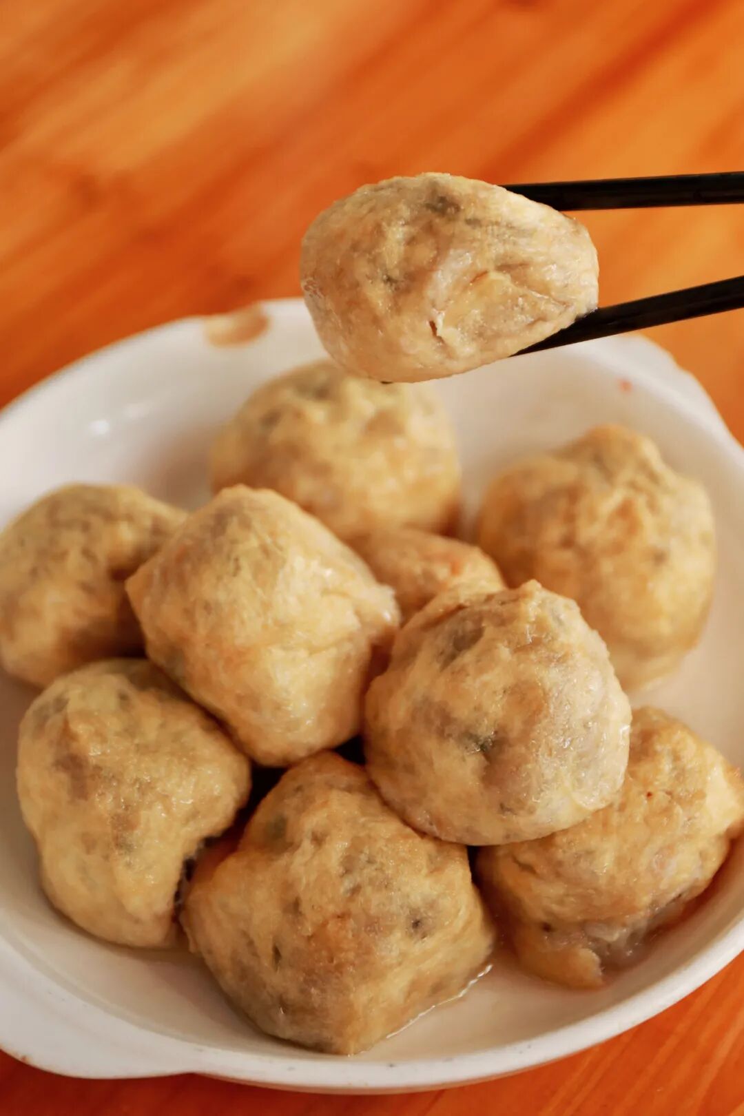 外脆里软的有油糍、豆浆糍等,那天吃的豆浆糍油有点大了,没能尝到很具体的味道; 圆圆的芋头糍就是油炸版酿豆腐,吃起来无比扎实。