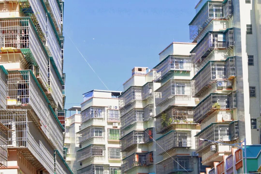 在街上跟小伙伴笑说,从外面看他们的窗户都很大,感觉房子面积应该也都很大,就是整齐划一的防盗网看着密集了些。