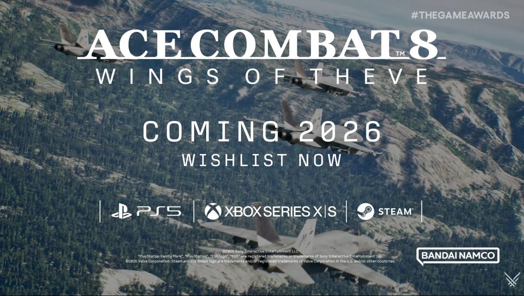 这次的《皇牌空战 8:希孚之翼》不仅是预告片的全球首秀,从引擎和画质表现来看相比 7 也有了不小的飞跃,本次预告的发布时间是 2026 年内,同时登陆 PS5、XBOX 和 Steam,希望不会跳票。