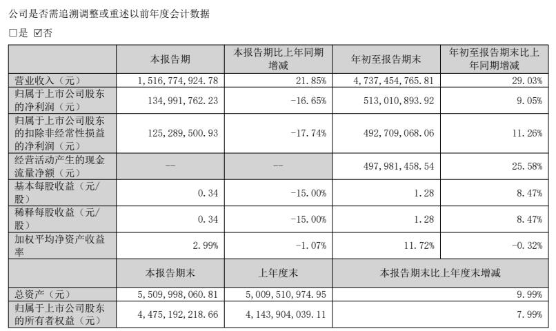 今年三季度公司营收15.17亿,同比增长21.85%;归母净利润1.35亿,同比下滑16.65%,利润缩水可谓相当明显。