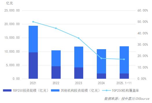 图10 2021年-2025年1-11月“Top 250”投资规模及市场覆盖率