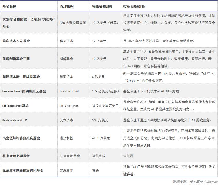 表5 2025年1-11月中国VC/PE市场外币基金完成募集重点案例