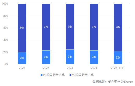 图11 2021年-2025年1-11月中国VC/PE市场投资数量占比