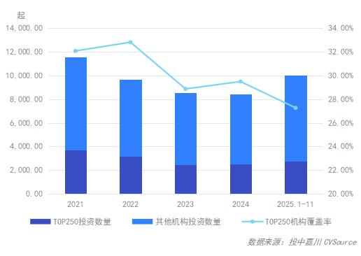 图9 2021年-2025年1-11月“Top 250”投资数量及市场覆盖率