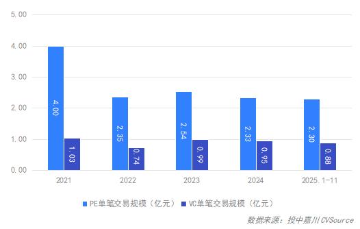 图13 2021年-2025年1-11月中国VC/PE市场投资均值概况