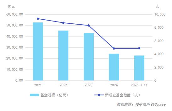 图1 2021年-2025年1-11月新设立基金数量