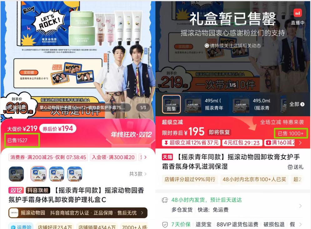 新锐美妆品牌摇滚动物园则在节目收官后,官宣了蒋易、孙天宇成为品牌灵感大师,为其量身打造了5000套摇滚灵感礼盒和专属周边,一经发售引发CP粉争相购买并在官方账号下排队晒单支持。