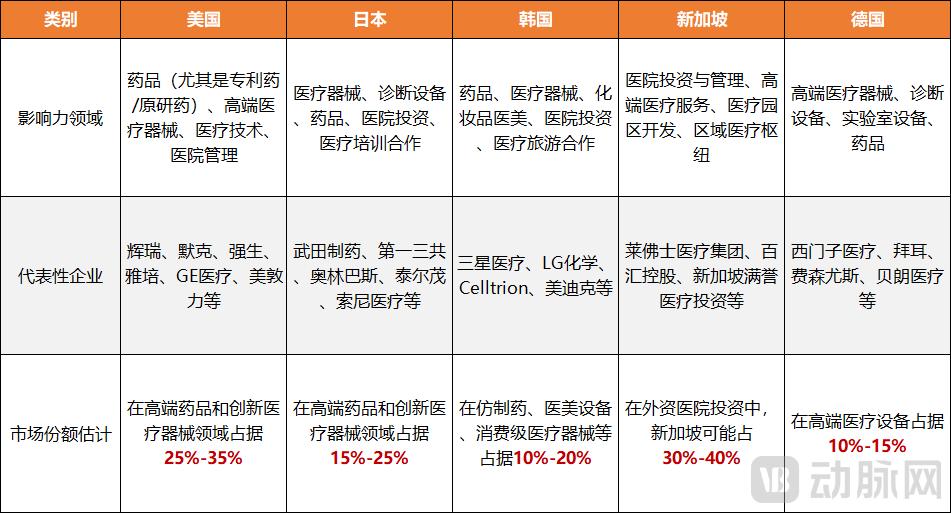 图5.美日韩新德在越南医疗市场的占比情况(动脉网制图)