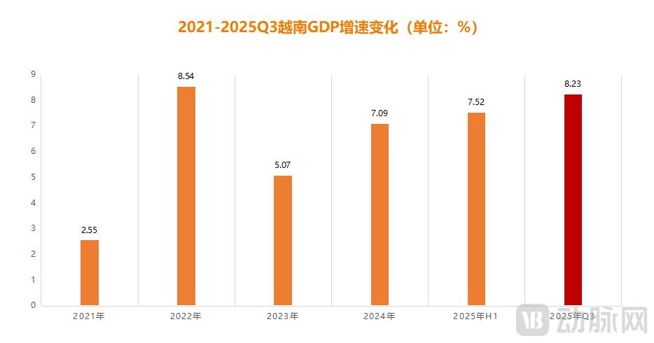 图1.2021-2025Q3越南gdp增速变化(数据来源:越南统计局,动脉网制图)
