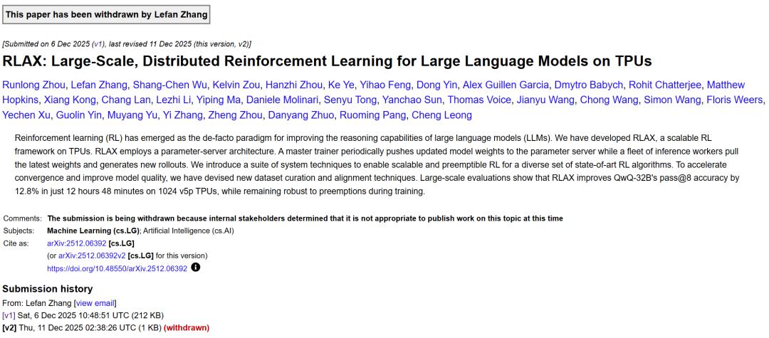 苹果光速撤回RLAX论文:用了谷歌TPU和阿里Qwen,作者中还有庞若鸣