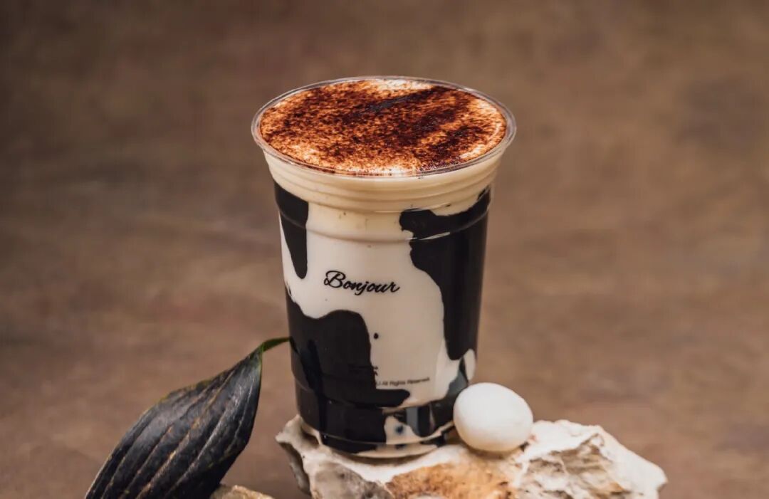 苏州欧沫沫的“阿公黑芝麻咕溜酪”,用黑芝麻奶酪块小料吸粉无数;