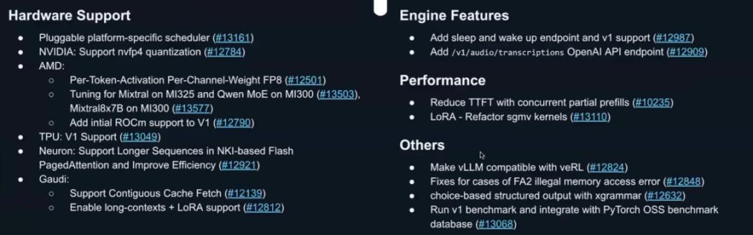 随着各类模型竞相发布,vLLM 的开发节奏也持续加快。尤其是 DeepSeek R1 的发布,推动团队从聚焦 Llama 系列模型效率优化,转向全力投入 DeepSeek 模型相关特性的优化中。
