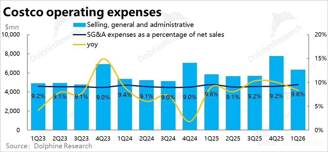 抛开预期差和增速波动,最主要的是缓解了通胀环境下,市场对 Costco 的费用率可能有趋势性向上因素,从而长期压制利润率扩张的担忧。但同样的,此次一个季度内的改善也未必证明上述担忧已完全解除,还是要继续观察。
