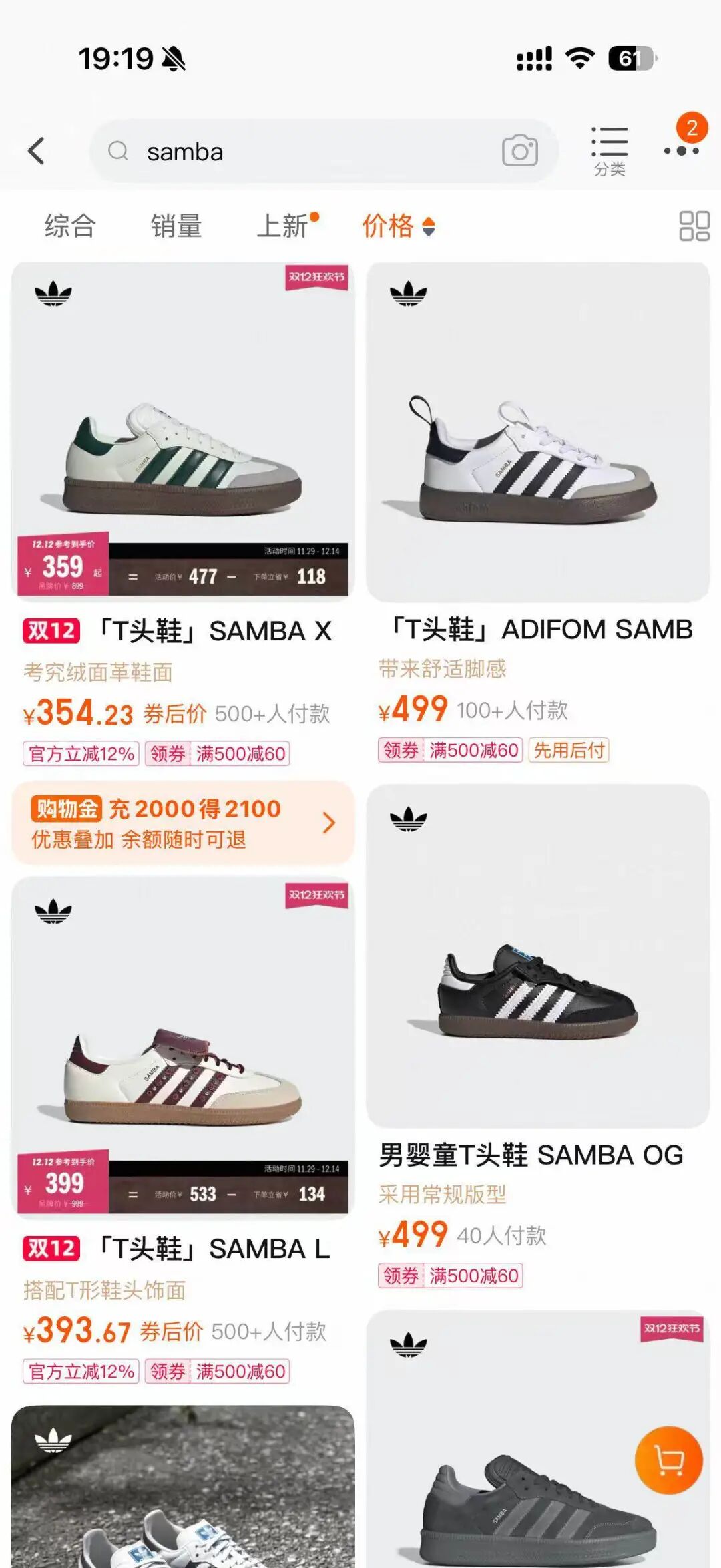 还有就是,阿迪达斯这些核心单品的打折非常频繁。本来定价600元左右的Samba鞋子,在折扣季经常能用300来元,甚至288元的价格购入。