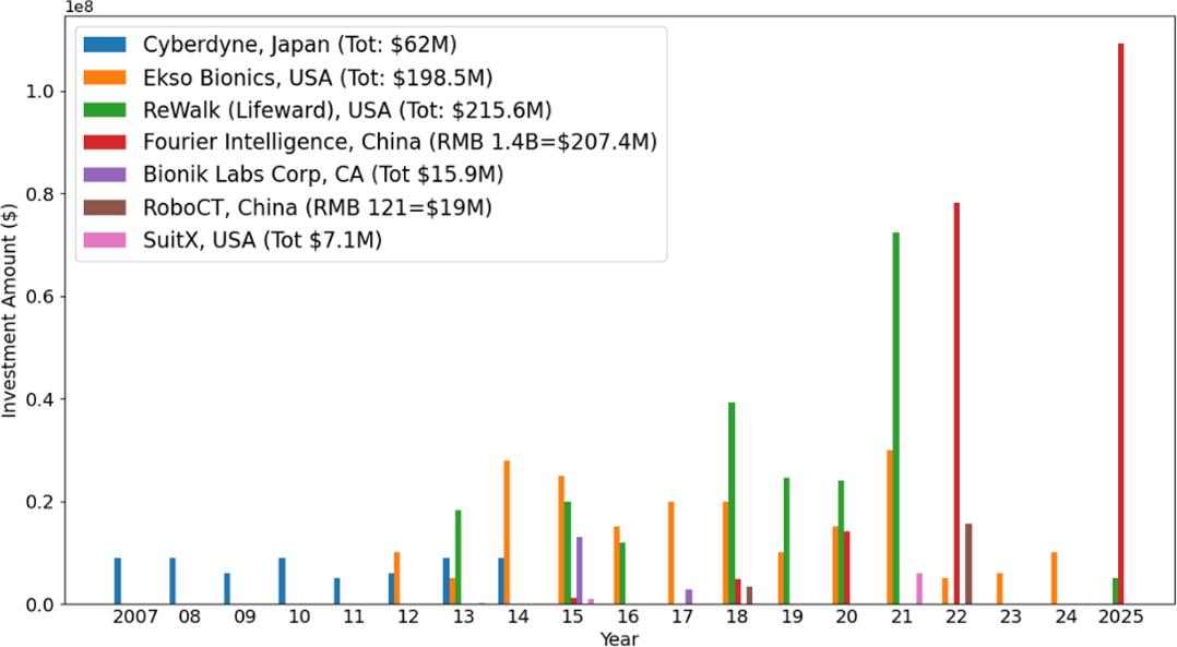 早期的大部分资本投资,都流向了如Cyberdyne类型的医疗外骨骼公司,如美国企业Ekso Bionics和ReWalk。