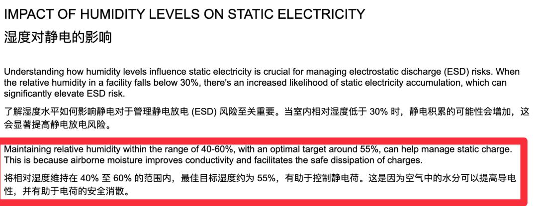 很多电子厂会把 40-60% 空气湿度当作一段安全区,防止静电放电损坏产品。