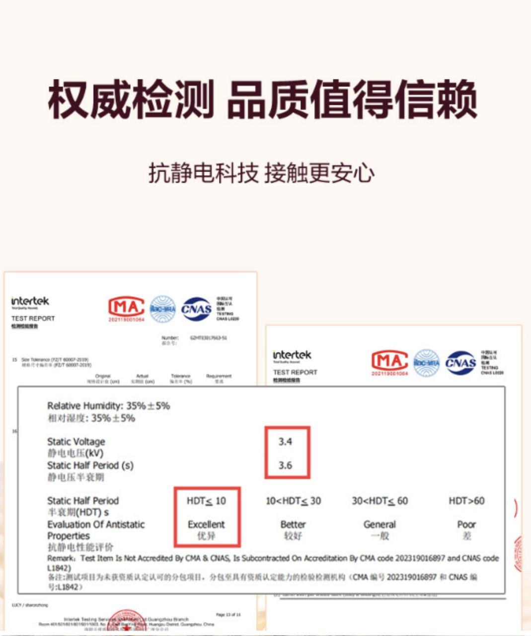 所以看抗静电衣服,你就找详情页里有无权威机构认证(比如 CMA、CNAS)的检测报告。