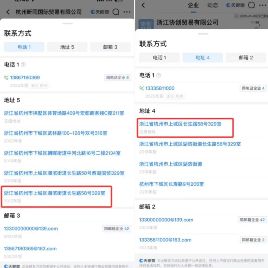 杭州昕同、浙江协创注册地址 图片来源:天眼查截图