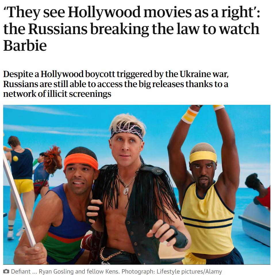 这么一套下来,什么《奇异博士2》、《芭比》、《奥本海默》、《壮志凌云2》也全都上映过,对,你没有看错,在制裁期间俄罗斯人照样能看被称为“美军宣传片”的壮志凌云系列。