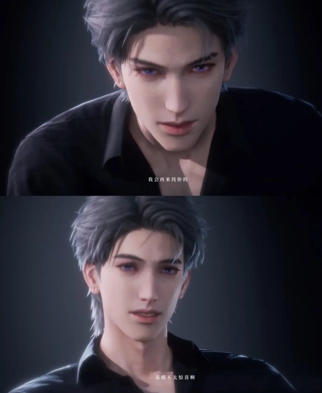 男主角出场的半张脸是比较有冲击力的,嘴唇、鼻子包括下巴建模精致且有辨识度,皮肤细节纹理也很到位,脸上的小绒毛清晰可见,第一个半张正脸的镜头其实可以称得上惊艳。
