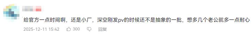 从各个平台官方账号的评论区就不难发现,女性用户一边吐槽男主角长得“人山人海”,调侃叠纸看完PV后睡得更香了,毫无竞争力可言,另一边也在呼吁给小厂更多时间,期待能够看到更多3D乙女向竞品出现,无论如何有新产品问世总归是一件好事。