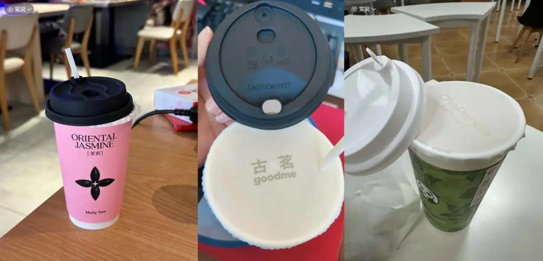 其他品牌像茶百道、沪上阿姨、古茗等也常采用类似的塑封膜再加杯盖的形式。