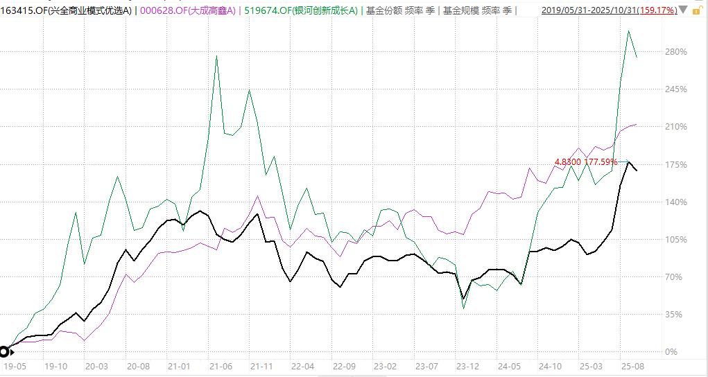 相较于郑巍山管理银河创新成长A时间达6年多,刘旭管理大成高鑫A有10年,此次跑出了34%超额收益的兴全商业模式优选A的基金经理乔迁,管理时间为7年多。在7年多里,兴全商业模式优选A的任职总回报为203.42%,任职年化回报为16.11%,超越基准167.08%。